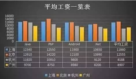 以北京上海广州深圳以及后起之秀杭州为例,分析近几年来Java,php,web前端以及.net工程师的就业趋势。虽然薪资有浮动变化,所有的职业都是呈上升趋势。这也就不难看出前面为什么互联网行业成为就业最被看好的职业了!