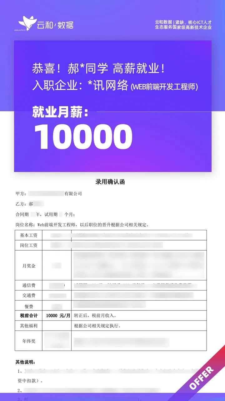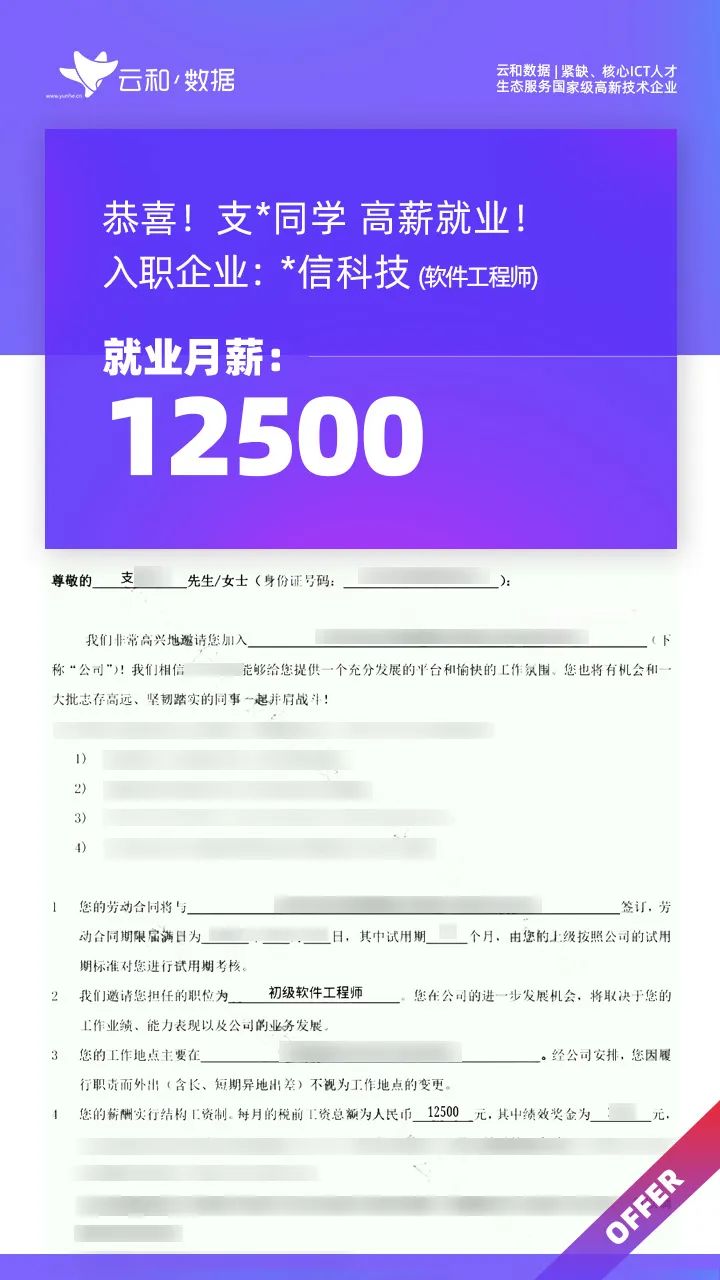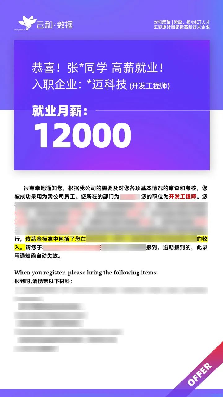 云和数据ICT职业教育发挥公司产业化优势与技术积淀,整合国内外优秀师资,累计自主研发140余项教辅、教材,115项实践教学实训平台,采用六位一体项目制教学模式,年培养高端ICT技术人才超10000人,其中线下ICT职业教育5500余人,累计为企业输送高端泛ICT技术人才超8万人,60%来自于口碑推荐。更大规模、更多人选择;更好的ICT学习、更好的就业。云和数据人才培养技术方向涵盖大数据、云计算、人工智能、虚拟现实、JAVA软件工程、UI用户体验设计、Web前端开发、网络安全八大方向,云和数据以八大精品课程为基础,八大就业基地为依托,一次就业率99.02%,61.9%就业薪资超1W,以大数据为首的精品专业平均薪资13.25K。