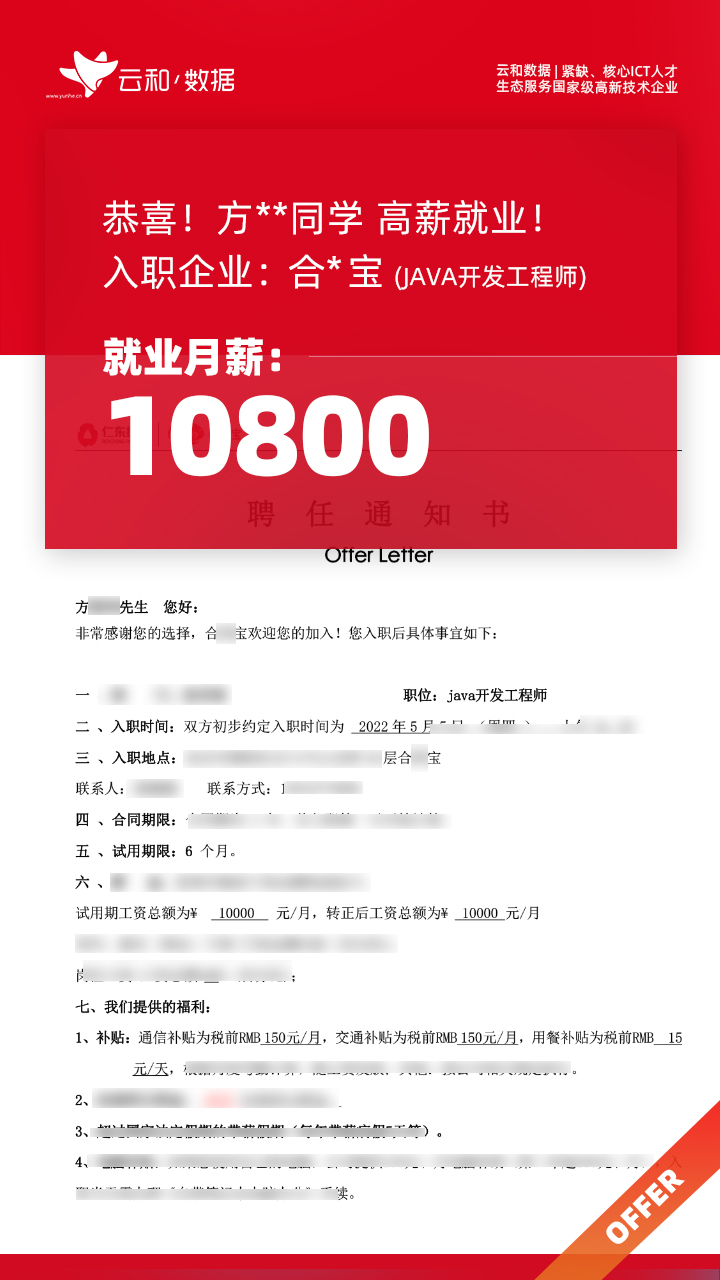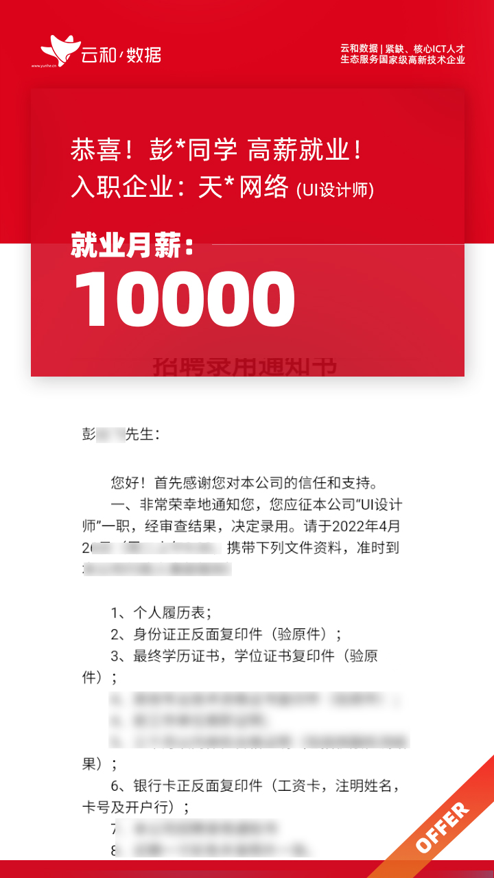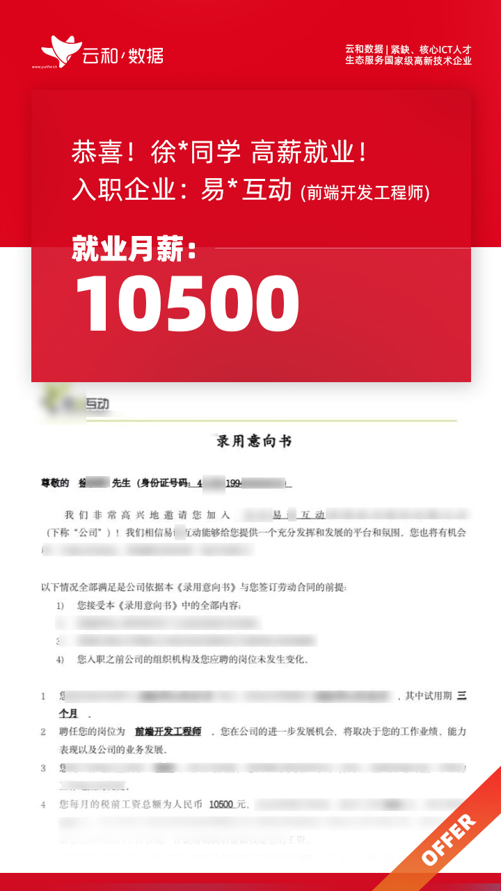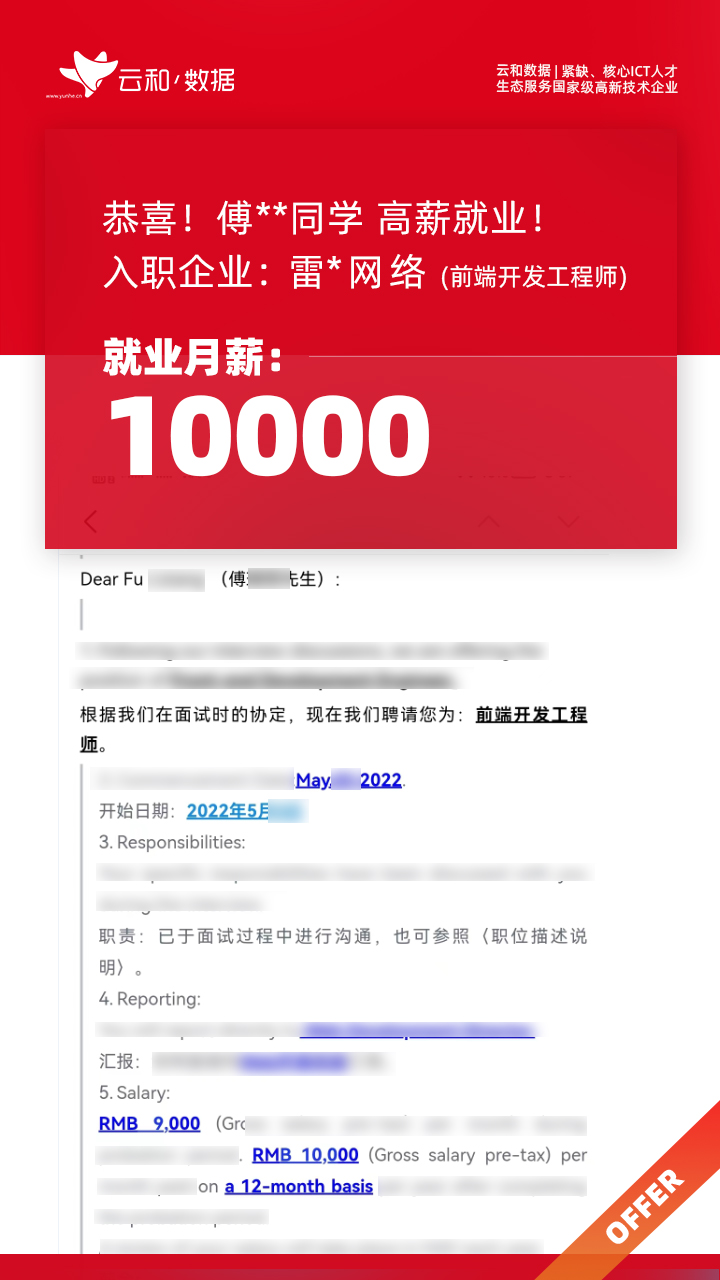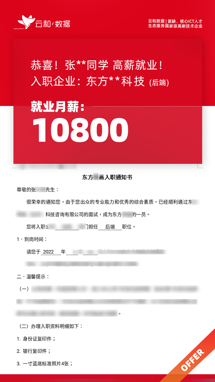 云和数据ICT职业教育发挥公司产业化优势与技术积淀,整合国内外优秀师资,累计自主研发140余项教辅、教材,115项实践教学实训平台,采用六位一体项目制教学模式,年培养高端ICT技术人才超10000人,其中线下ICT职业教育5500余人,累计为企业输送高端泛ICT技术人才超8万人,60%来自于口碑推荐。更大规模、更多人选择;更好的ICT学习、更好的就业。云和数据人才培养技术方向涵盖大数据、云计算、人工智能、虚拟现实、JAVA软件工程、UI用户体验设计、Web前端开发、网络安全八大方向,云和数据以八大精品课程为基础,八大就业基地为依托,一次就业率99.02%,61.9%就业薪资超1W,以大数据为首的精品专业平均薪资13.25K。