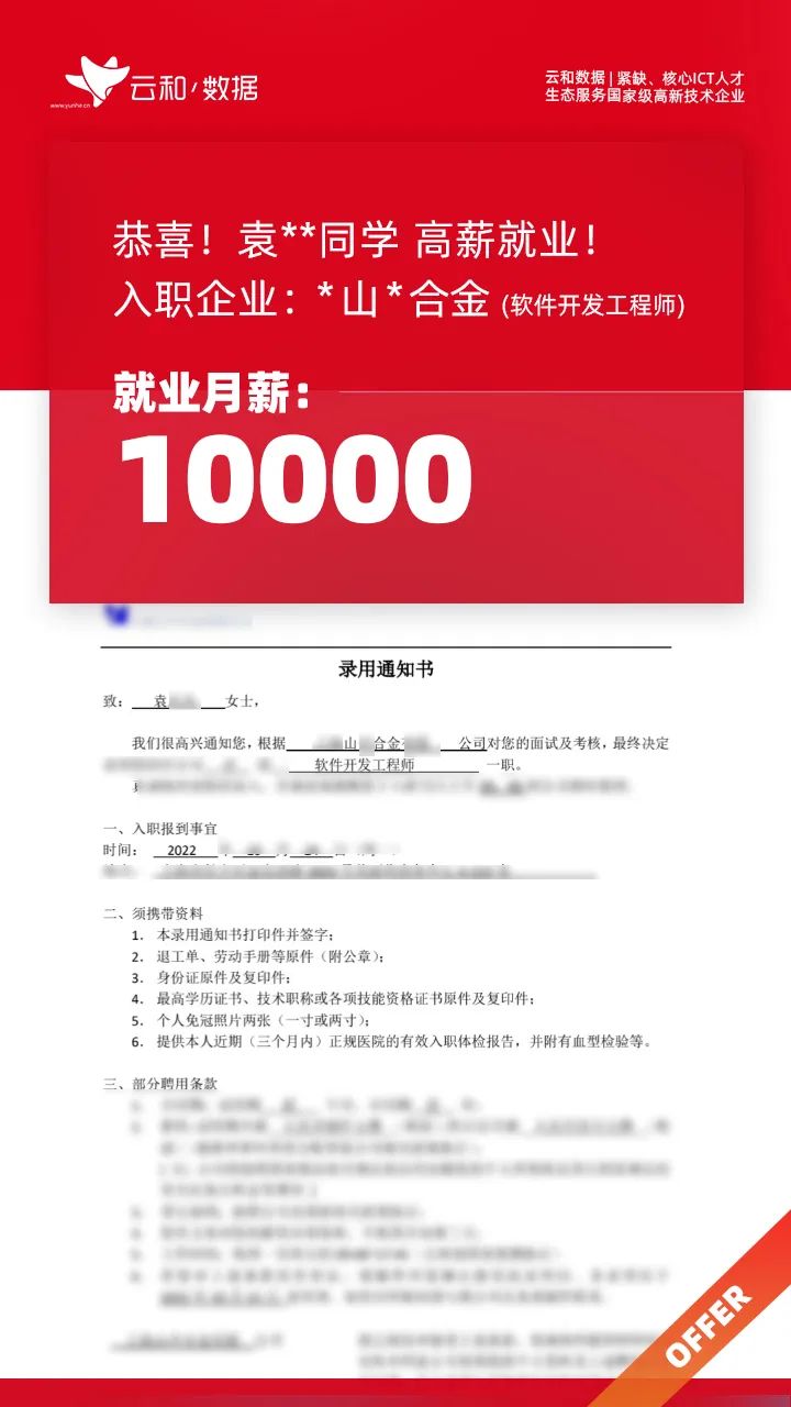 云和数据ICT职业教育发挥公司产业化优势与技术积淀,整合国内外优秀师资,累计自主研发140余项教辅、教材,115项实践教学实训平台,采用六位一体项目制教学模式,年培养高端ICT技术人才超10000人,其中线下ICT职业教育5500余人,累计为企业输送高端泛ICT技术人才超8万人,60%来自于口碑推荐。更大规模、更多人选择;更好的ICT学习、更好的就业。云和数据人才培养技术方向涵盖大数据、云计算、人工智能、虚拟现实、JAVA软件工程、UI用户体验设计、Web前端开发、网络安全八大方向,云和数据以八大精品课程为基础,八大就业基地为依托,一次就业率99.02%,61.9%就业薪资超1W,以大数据为首的精品专业平均薪资13.25K。