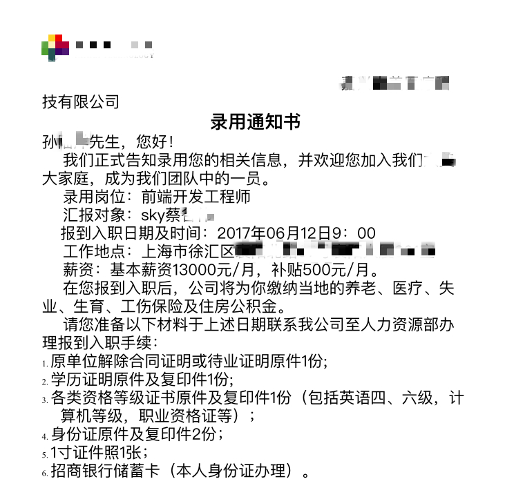 孙同学是云和数据HTML5专家班的一名普通学员,毕业即入职上海某知名企业,担任前端开发工程师一职,月薪13000。