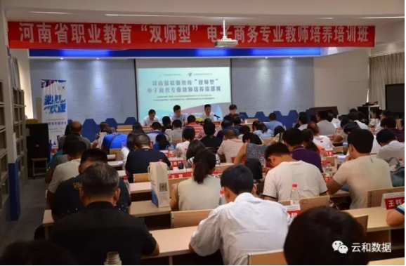 河南省职业教育双师型电子商务专业教师培养培训班开班仪式在河南省商务中等职业学校、云和数据信息技术有限公司以及职业院校电子商务专业各位骨干教师的合力推动下,于2017年7月10日在河南省商务学校报告厅举办取得圆满成功。